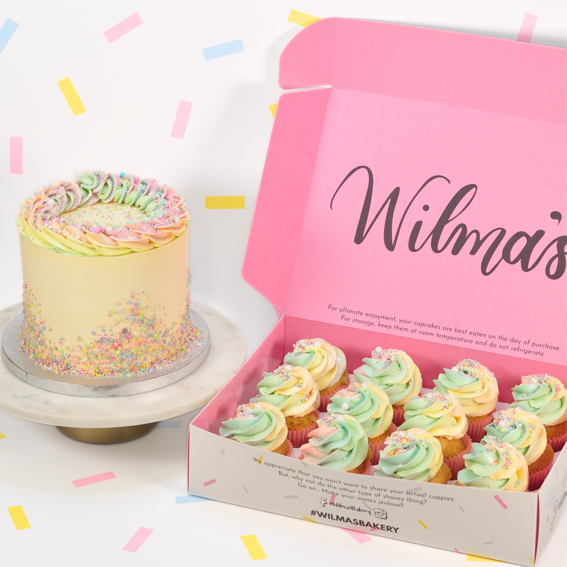 Oooooh this is a pretty one (if we do say so ourselves!) This pretty pastel number is here to make your sprinkly cake dreams come true! Pastel Dreams has a buttercream white outer, a pastel rainbow coloured piped buttercream crown and is finished off with an abundance of pastel rainbow sprinkles & glitter.
