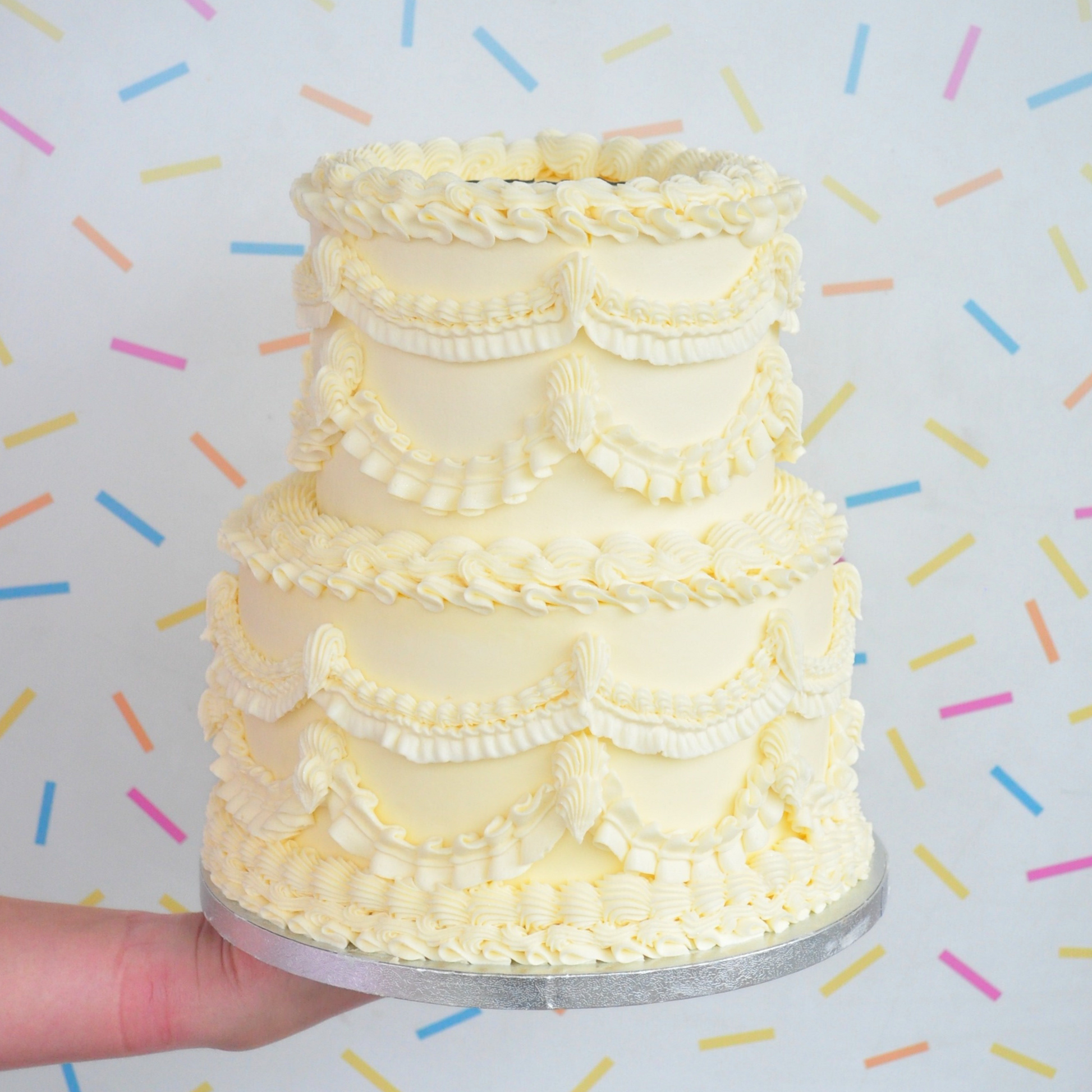 SPRINKLES: Please note when purchasing a Gluten Free or Vegan Cake that the sprinkles pictured may differ from those used on your cake as many sprinkles contain gluten, or non-vegan ingredients, and therefore these are unable to be used.