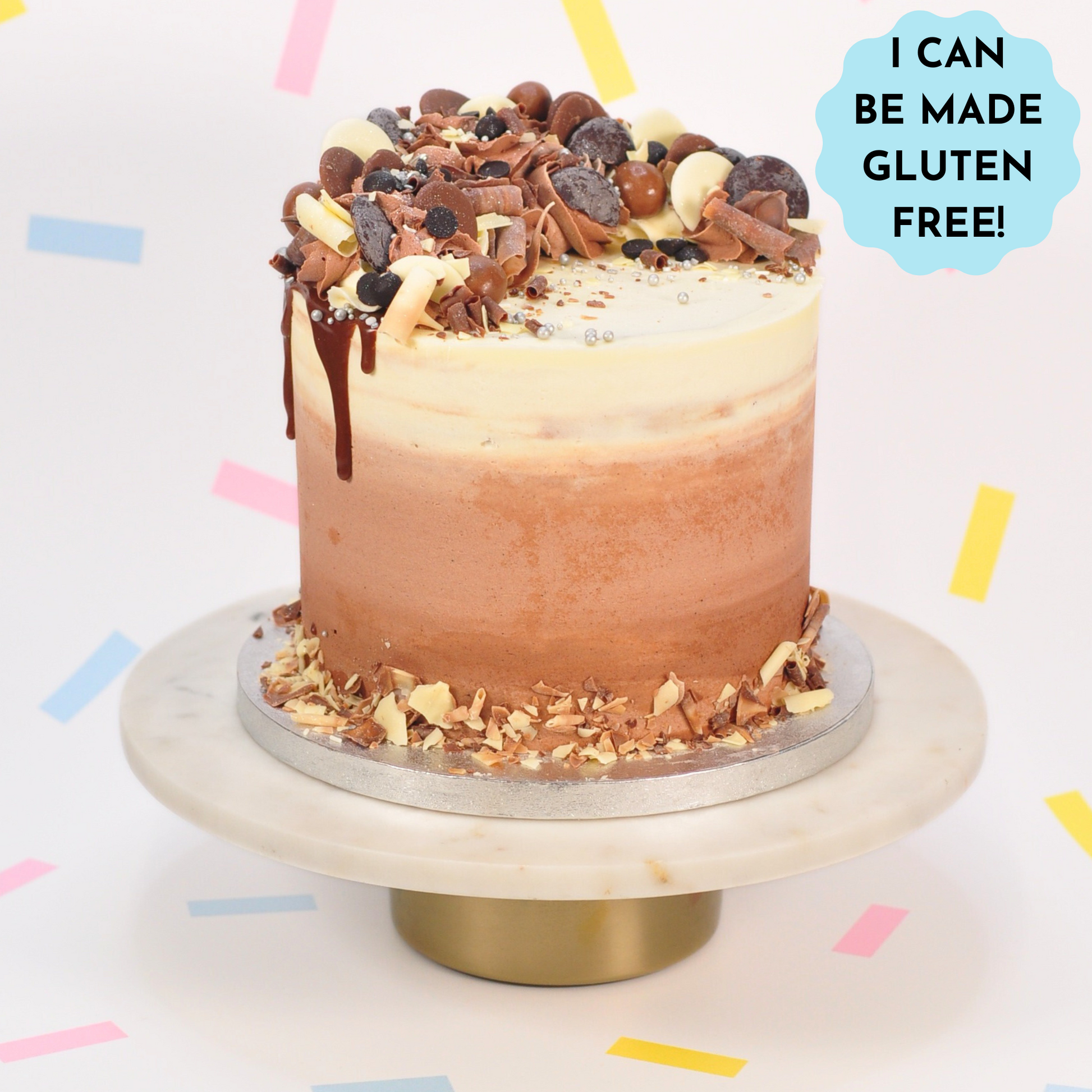 SPRINKLES: Please note when purchasing a Gluten Free or Vegan Cake that the sprinkles pictured may differ from those used on your cake as many sprinkles contain gluten, and these are unable to be used.